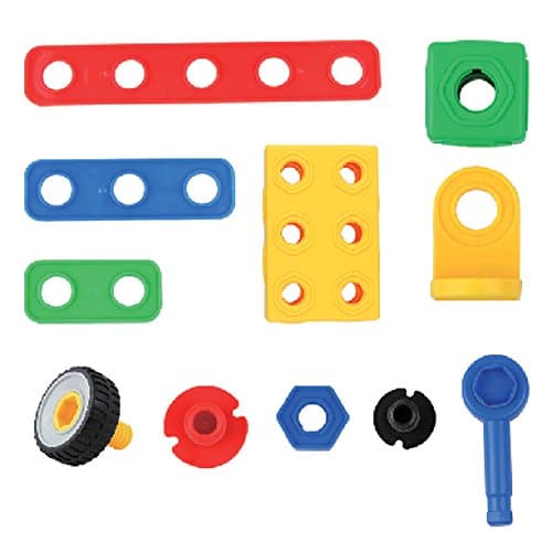 – Comes with 85 pieces including blocks, wheels, anchors, bolts, tools in many shapes and sizes.