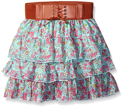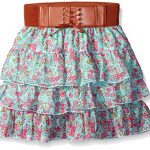 Above the knee period elastic waist pull on skirt with ruffles and belt