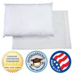 Dreamtown Kids LLC is a family owned and operated business. We’re constantly on the lookout for practical and protected solutions for parents like us! All our pillows and cases are manufactured and shipped from the USA. Both pillowcase and casing are a blend of more than a few cotton and polyester fibers and the filling is made from two polymers by spinning and joining them concurrently. The final result is hollow slick light polyester that is crimped for extra resiliency and soft to the touch. Its suggested that if you’re concerned about allergies to use polyester or a poly blend over natural fibers.